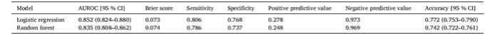 研究结果显示,青少年NSSI10个危险因素为:青少年抑郁、青少年失眠、家庭冲突、父母抑郁、性别、留守经历和父母失眠、父母心理健康知识水平、家族精神病史和家庭成员死亡经历;4个保护因素为:产生心理问题时向父母求助 、母亲受教育程度(低于高中)、产生心理问题时向家庭中其他人求助和良好家庭功能。逻辑回归和随机森林模型性能表现均较好。通过以上结果我们认为,要预防自伤行为应该进一步建设更便捷有效的心理健康服务途径,注重提升家庭功能,建立支持性和充满温暖的家庭环境,着重解决父母的心理问题及其影响因素,树立家长对孩子自伤行为表现及精神疾病的正确认识、降低家长病耻感,加强有效育儿方式的实施。
