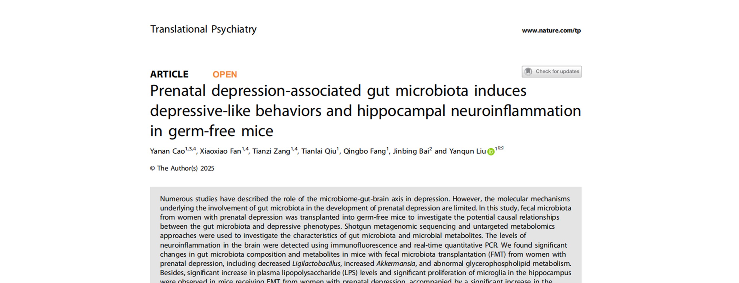 刘燕群课题组在产前抑郁与肠道菌群研究领域取得重要突破