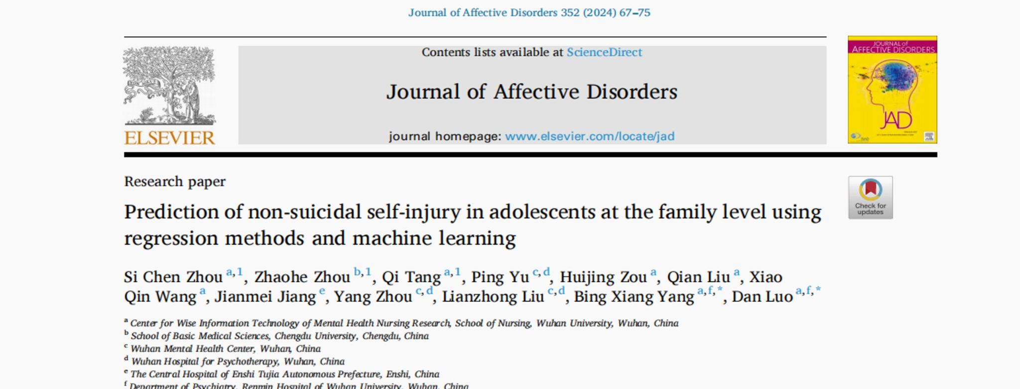 porhub live 杨冰香、罗丹研究发现青少年非自杀性自伤的家庭风险预测因素