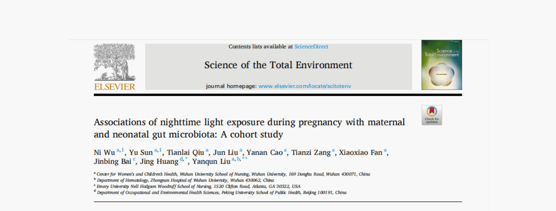 刘燕群课题组在妊娠期夜间灯光暴露对母婴肠道菌群的影响研究中取得新进展
