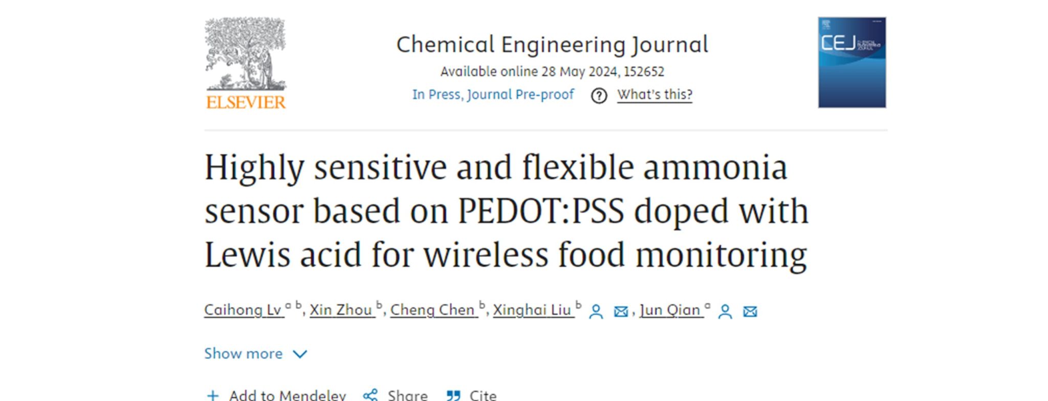 porhub live 智慧护理工程研究中心钱俊教授团队在氨气传感与器件领域研究取得新进展
