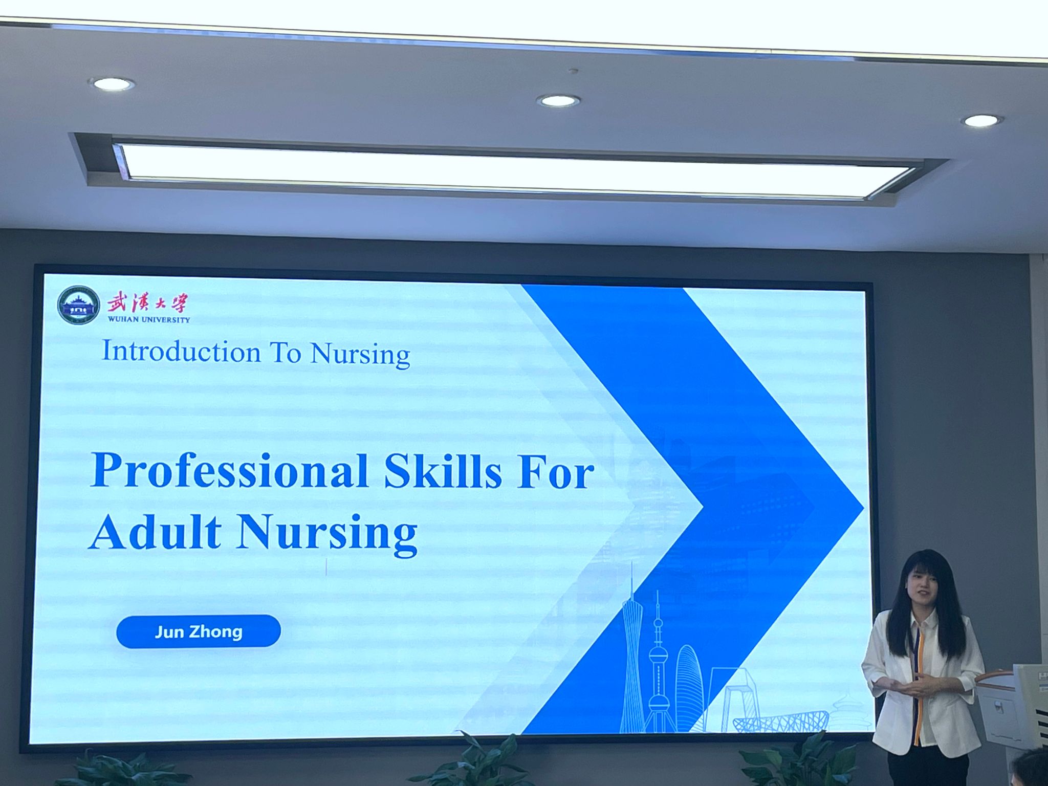 随后,《护理学导论(英)》课程组蔡忠香老师、王素青老师、钟君老师、刘茜老师和余立平老师依次围绕其所负责课程章节内容《Professional values and practice》、《Introduction to research resources and academic practices》、《Professional skills for adult nursing I》、《Introduction to anatomy and physiology》、《Pearson-centered care: from secondary to primary care (person-family-community-population》进行了的英文试讲展示,与会专家们在认真倾听后针对各教师的课堂教学表现进行了评议,以通过全方位的把关遴选来确保教师授课质量。