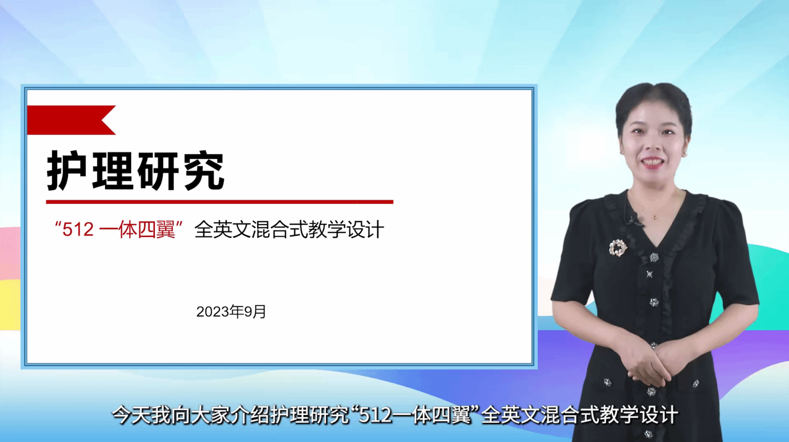 该课程团队秉承着“以学生发展为中心,以‘两性一度’为标准”的教学理念,提出“一感二思维三精神四能力五阶段”的课程目标,采用“512一体四翼”的全英文混合式教学模式,将不同的思政主题与元素有机地融入到教学中,以科研项目为载体,将MOOC、交互式课堂、实践课堂和拓展课堂进行四堂协同,构建了“从理论知识到临床实践再到应用转化”的教学创新体系,实现了学生培养中知识、能力、价值的同步提升,为学生今后进行护理科研筑基,培养“国际化、复合型、创新型”高水平护理人才发挥了非常重要的作用。