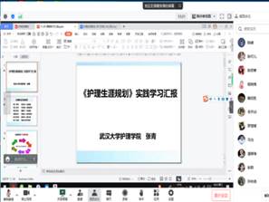彭启智书记线上听完《护理生涯规划》的期末汇报后表示,张老师本次课属于社会实践学习总结汇报课,创新性将课堂体验式教学和社会实践教学融合,在教学中融入思政元素,课堂生动形象,学生参与度高,对同学们认识专业、学习专业、发展专业具有很好的指导意义。