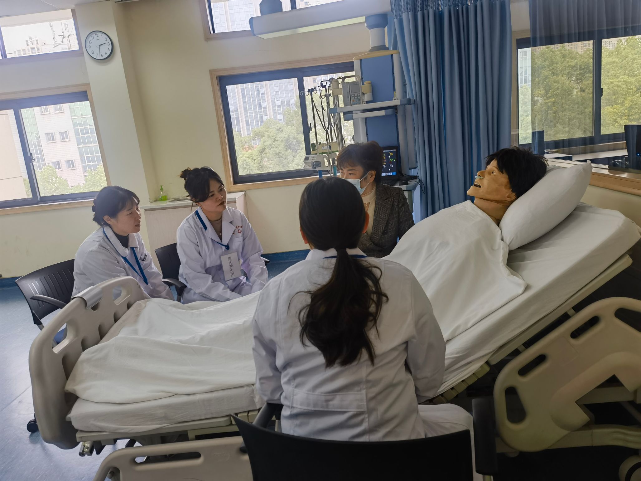 张青老师牵头,特邀中南医院安宁疗护专家吴新、陈慧莉以及学院邹智杰老师共同为90名来自湖北省医疗机构老年医学科和医养结合机构护士开展老年安宁疗护预立医疗照护计划的高仿真模拟教学培训。