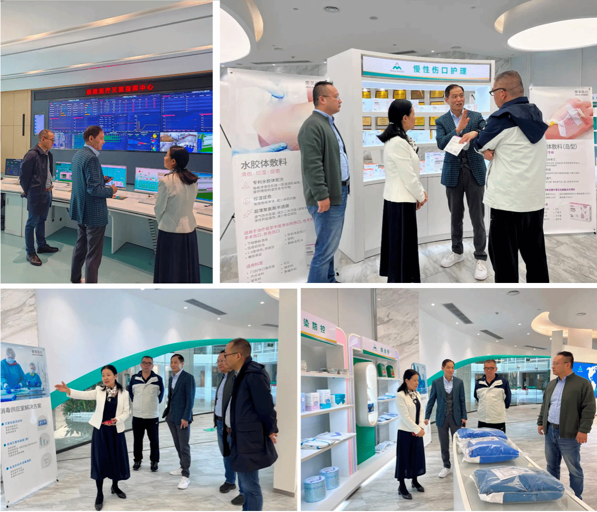 周芙玲院长一行在崔金海董事长的陪同下,考察了奥美医疗产品展厅、生产基地和灭菌中心,深入调研了奥美医疗全球领先的智能制造、生产管理、灭菌体系。