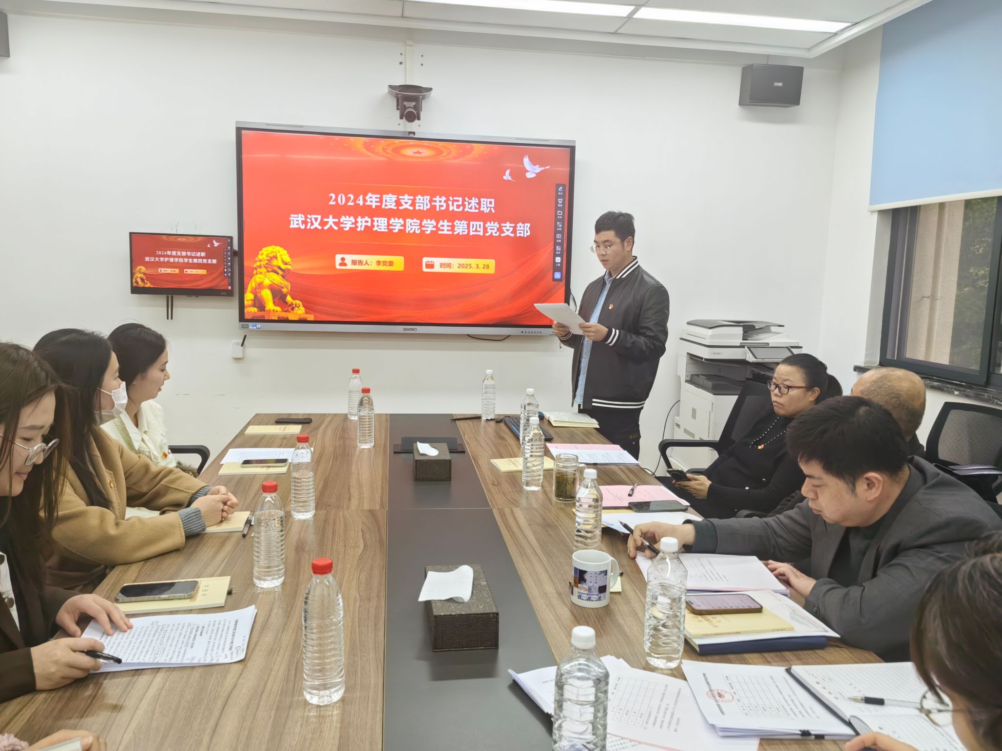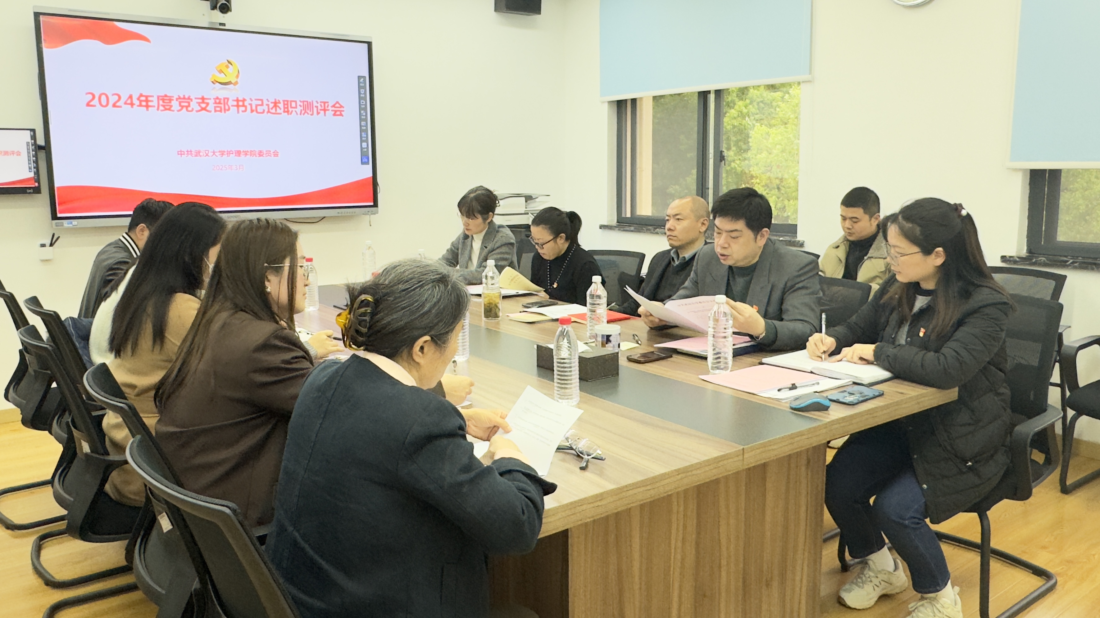 在医学部2号楼416召开2024年度党支部书记述职会。学院领导班子、党委委员、各党支部书记、教师和学生代表参加会议。会议由党委副书记罗睿主持。