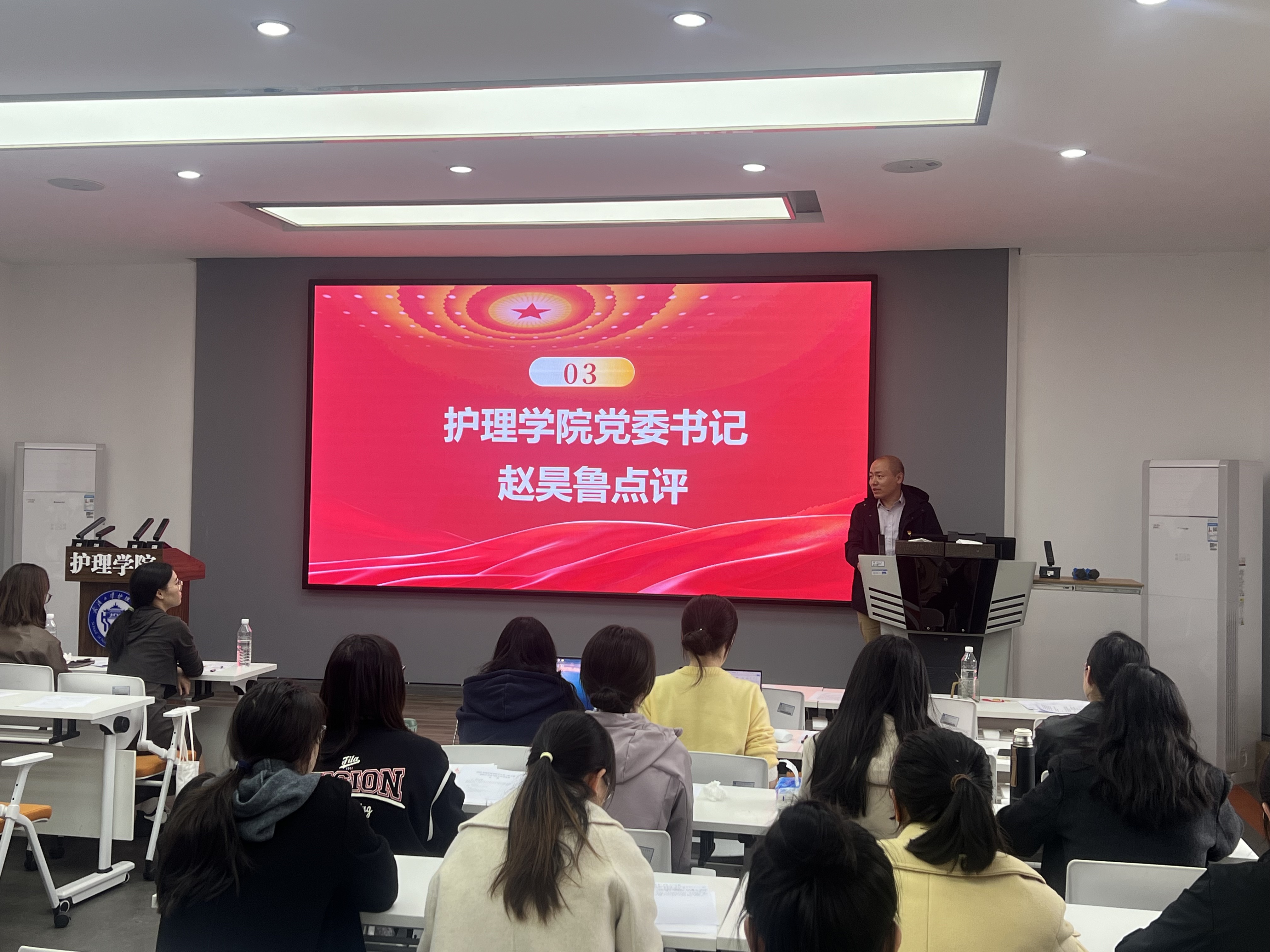 护理学院党委书记赵昊鲁列席会议,支部全体党员参加会议,会议由支部书记毛诗柔主持。