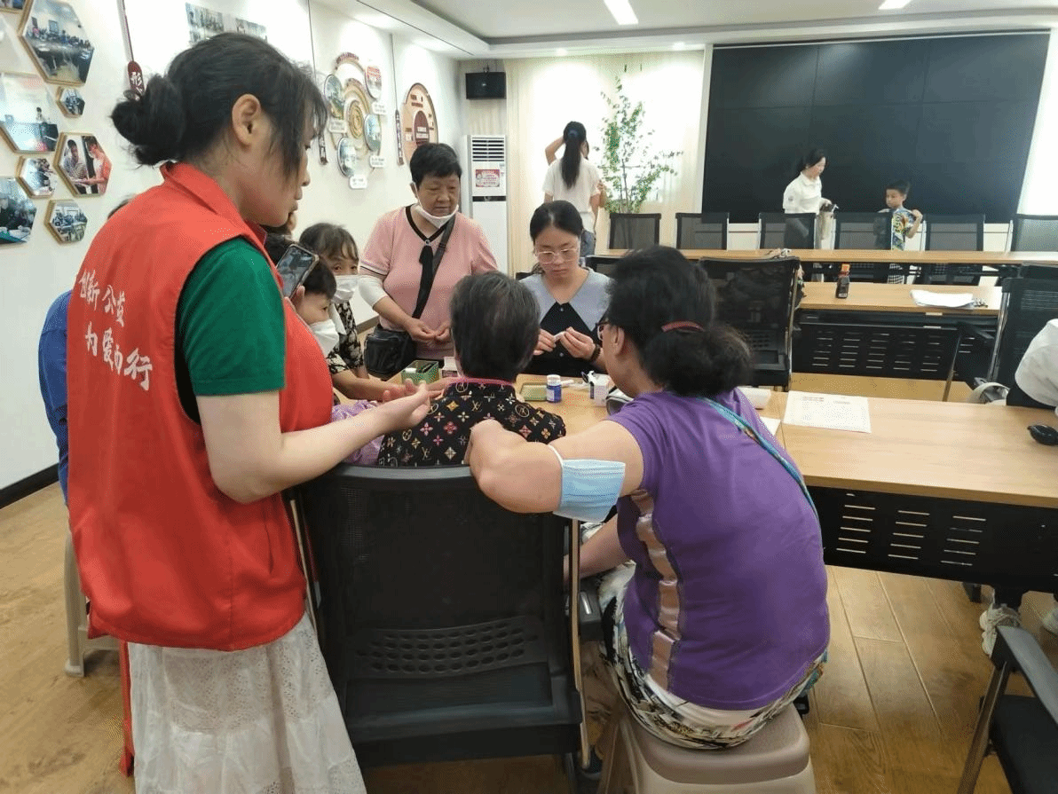 健康教育活动讲座结束后,队员们帮助老年人们测量血压、血糖,应用所学的护理专业知识为老人们答疑解惑,促进老年人更加关注和了解自己的健康状况。