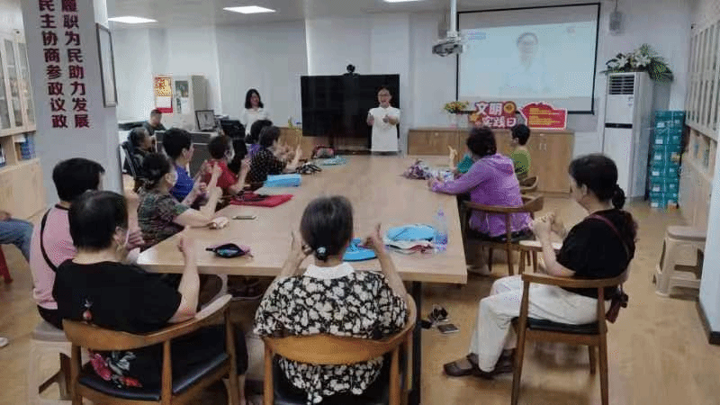 7月12号上午9:00,实践队队员提前到达宣讲教室准备用物,准时开展宣讲活动。实践队员聂梦缘深入浅出地讲解了认知症概念、临床表现、认知症的预防以及认知症与老年痴呆的区别等基本知识,鼓励老人们保持健康的生活方式,积极参与社区活动,坚持大脑锻炼。健康教育活动形式丰富,氛围活跃,王玥同学还带领老人一起做认知训练加减手指操。老人们也积极踊跃发言参与互动,分享自己的健康知识和小故事,整个健康教育活动进展十分顺利。
