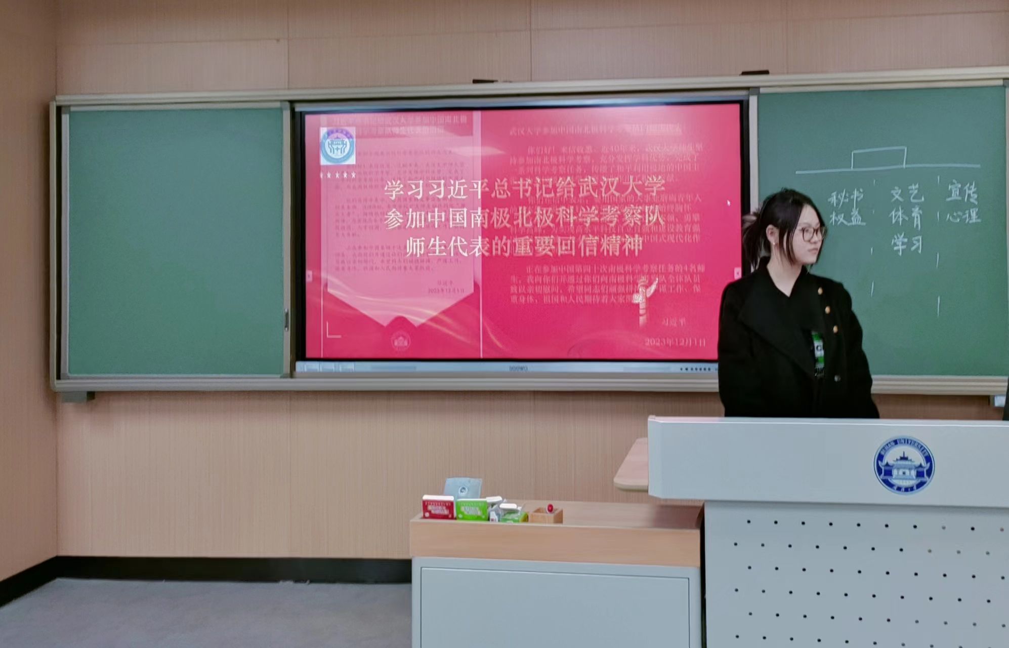 参加中国南极北极科学考察队的回信精神。她提出,作为学生会成员,我们要将习近平总书记的殷切嘱托,转化为刻苦钻研、积极进取的实际行动,学习贯彻习近平总书记的重要回信精神,发扬艰苦奋斗、服务大众的工作作风。