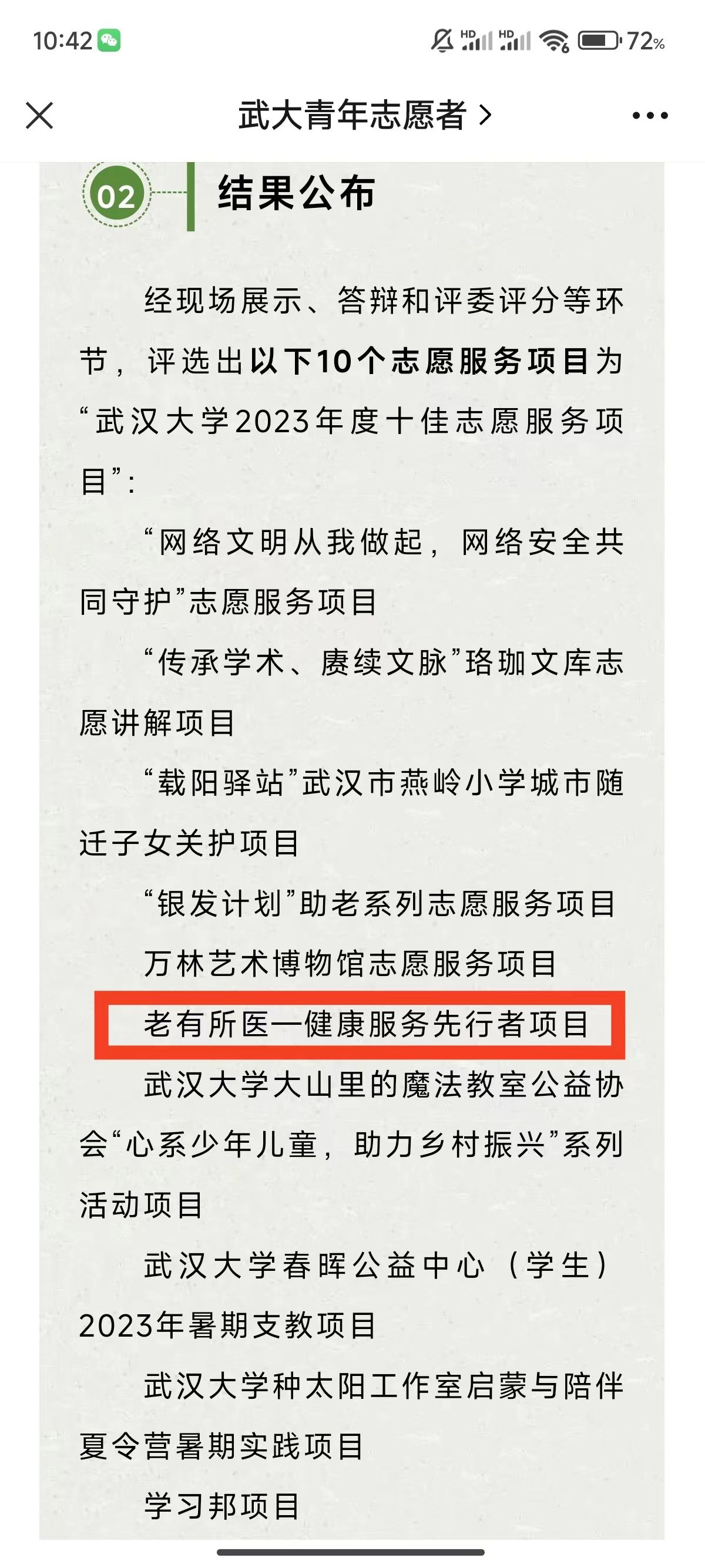 (通讯员 李珂)近期, porhub live 天使之翼社团在取得“2023年度湖北省本禹志愿服务队”称号后,又凭借“老有所医—健康服务先行者”项目荣获“ porhub live 2023年度十佳志愿服务项目”!