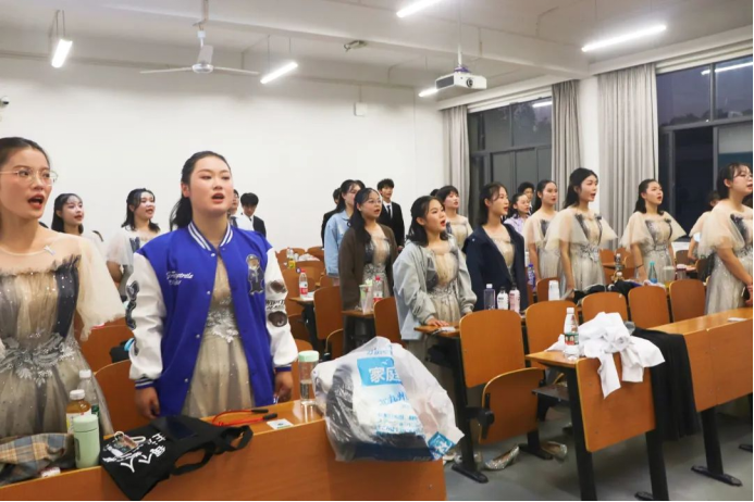 杨凤琴:合唱比赛告一段落,在这段时间里我也收获了颇多。可能我们队比较特殊,三分之一的人在本部,三分之二的人在医学部,以至于我们需要大晚上从本部到医学部,排练完再回本部。坦白讲,是有过怨言的,但是当我们站在台上,为了同一个方向努力而闪闪发光时,我觉得所有的怨气一下都散了,只剩下开心与激动。在这次活动中,也结识了许多一同热爱唱歌的小伙伴,让追求热爱的路不再那么孤单与漫长。最后,那些在台下为我们欢呼鼓掌,在台后为我们看东西,为我们做好后勤工作的同学,也让我体会到了集体的归属感!