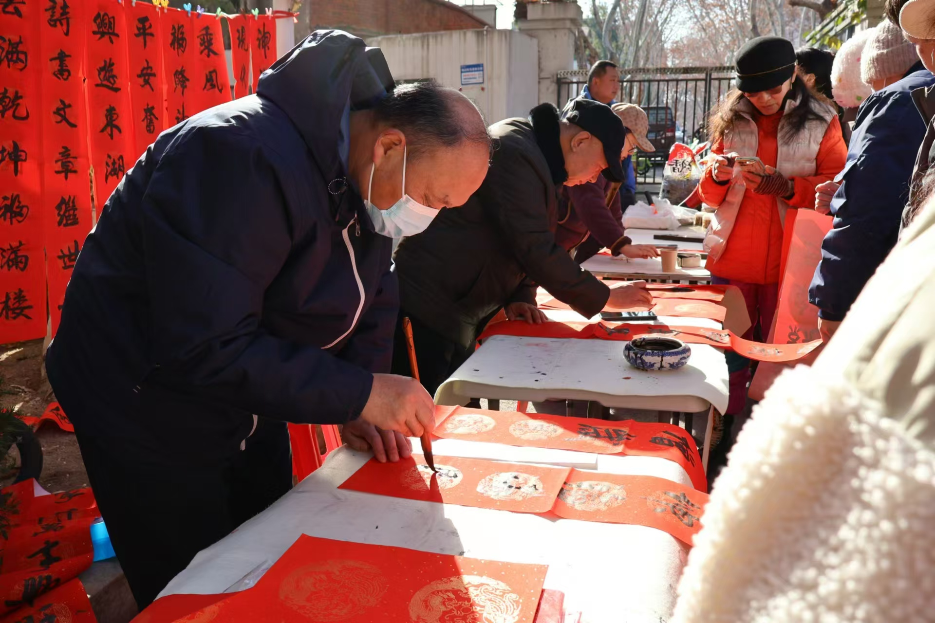 社区工作人员与实践队成员还携手举办年货节活动,以实惠价格售卖日常生活用品和常用药物,并准备美食。团队邀请毛笔字艺术家,为居民免费写春联和福字,传承中华优秀传统文化。