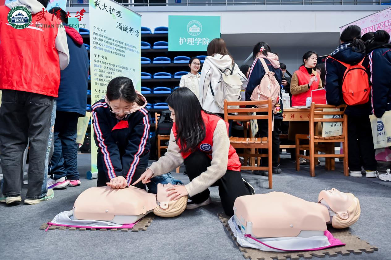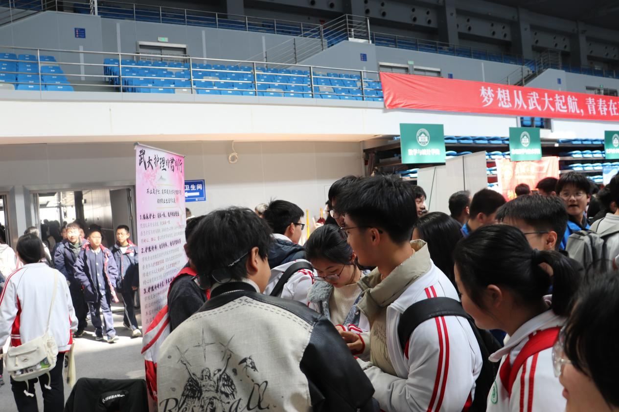 于卓尔体育馆举办“高中生赏樱专场”活动。学校36个学院及130个本科专业悉数亮相,为高中生提供沉浸式体验机会,全方位展示武大的办学特色与学科优势。