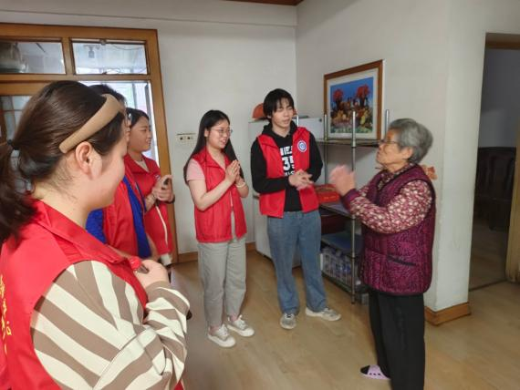 健康宣教活动结束后,碧苑花园社区团支部副书记易巍带领部分志愿者上门拜访了几位独居老人。在敲开第一扇门时,熊友琴奶奶以热情的笑容迎接了所有志愿者。熊奶奶的腿脚不便,在交谈过程中也向志愿者诉说了她腿骨诊治的经历。从她的口中,志愿者们了解到了当前独居老人接受医疗服务的一些生活阻碍,如行动不便、医疗服务、使用电子设备困难等,志愿者也表示今后将结合老人的具体的、实际的需求开展相应的志愿服务。
