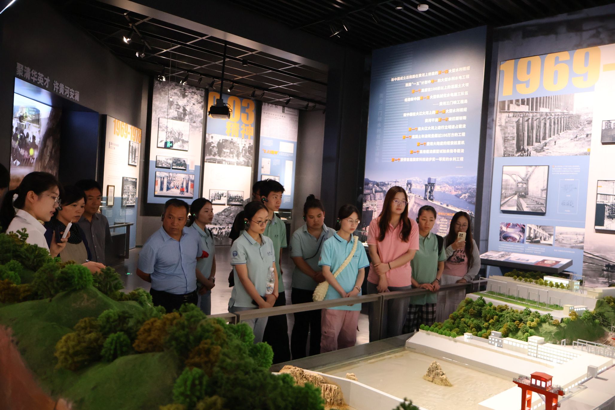 实地探访中,实践队登临三门峡大坝,其宏伟壮观的身姿令人叹为观止。站在坝顶远眺,奔腾不息的黄河水在此被巧妙拦截,形成壮阔山水画卷;水流冲击坝体的轰鸣仿佛诉说着建设者们的艰辛与智慧,而大坝巍然屹立的姿态,既展现了人类改造自然的壮举,更让队员们深切感受到三门峡与黄河间深厚的历史羁绊。