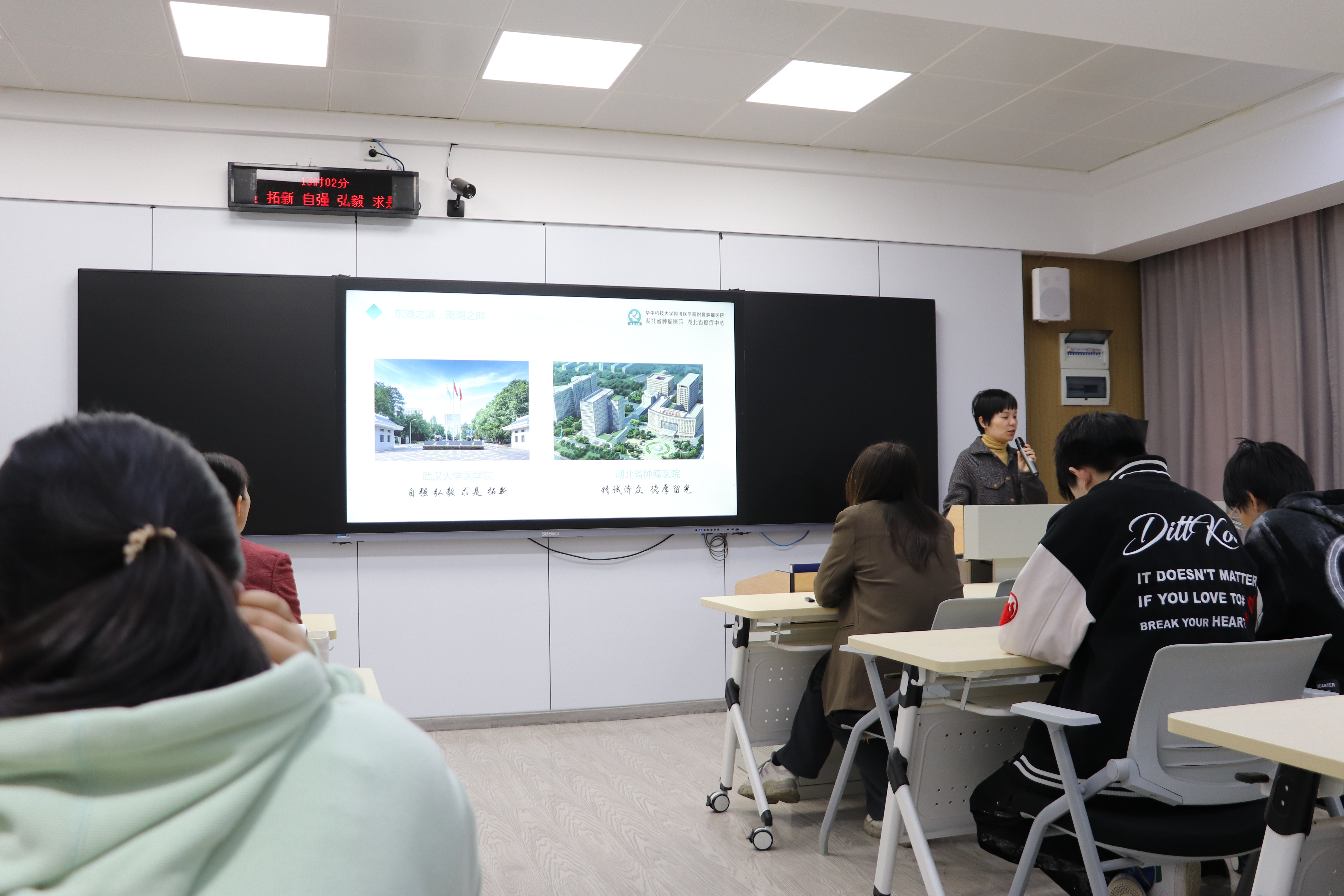 宣讲会伊始,王慧芬老师从总体概况、发展历程、社会责任、福利待遇四方面介绍了湖北省肿瘤医院的基本情况,鼓励同学们积极投身临床,代表湖北省肿瘤医院欢迎同学们投报简历。