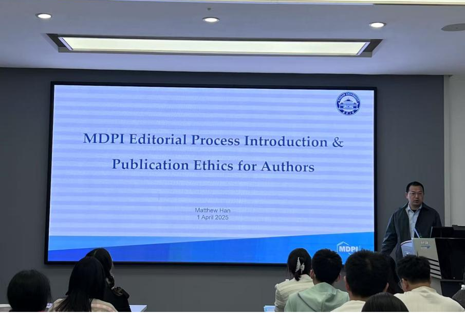 随后钟奕博士介绍了如何撰写投稿信(cover letter),以及英文科技论文各部分的写作方法和注意事项,包括题目、摘要、关键词、引言、结果、讨论和结论等内容。同时,还强调了论文写作中的常见问题,如避免使用中文输入法的标点符号、注意语法规范、合理使用人工智能辅助写作,以及中西方表达方式的差异等。最后,许馨元向同学们介绍了MDPI公司的招聘岗位及流程,涵盖笔试和面试的考察内容,并说明了校园大使的招聘情况。