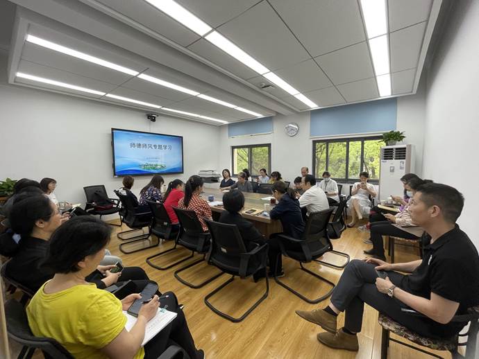 领学结束后,与会老师结合观影和学习内容,围绕师德师风建设展开热烈讨论。陈晓莉教授提出学院要为教师的成长保驾护航,多关爱教师,帮老师们规划好职业生涯,谋好出路;杨冰香副教授结合个人职业发展历程,指明广大教师要在积极的实践锻炼中增强师德修养,以优秀的专业素质涵养高尚的师德素质;教工党支部书记张青老师结合“大健康”建设方向,提出师德师风建设根本是要贴合学生需要,关注学生的专业发展与人格健全;引进人才邹会静老师从国际大视野出发,针对护理专业发展、学生培养、国际交流合作等方面阐述师德师风建设的必要性,蔡春凤老师、刘茜老师也结合学习谈了个人体会。