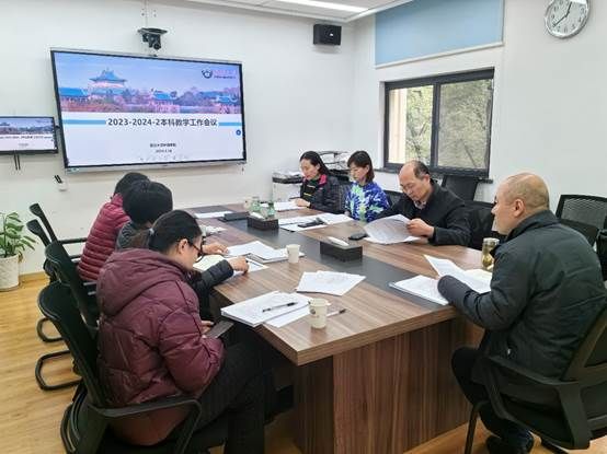 2023-2024-2学期本科教学工作会议在学院416会议室召开。学院党委书记赵昊鲁、副院长杨冰香、各教研室主任、教发中心主任、教办主任及教学管理人员参加了会议,会议由杨冰香副院长主持。
