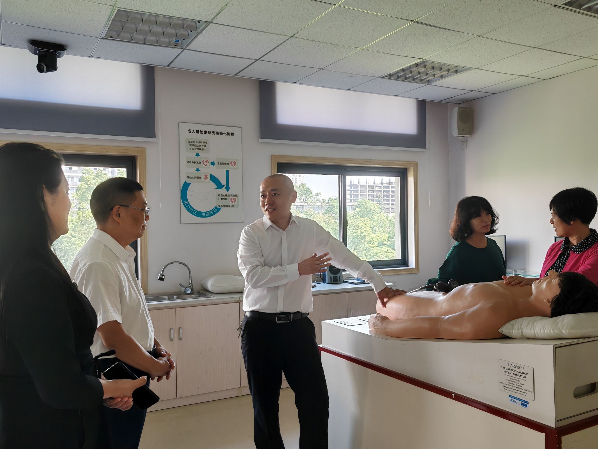 座谈结束后,秦伟文一行参观了护理模拟实验中心和康复模拟实验中心。