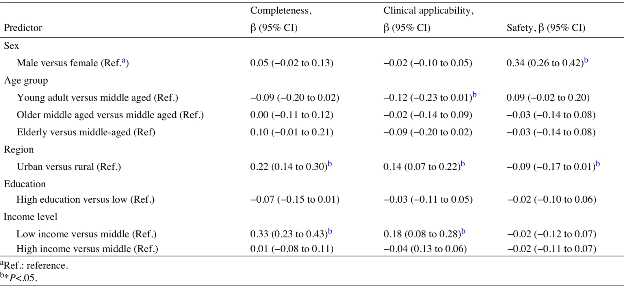 在质量层面,专家评审结果呈现出一定的反向特征:生活在城市、较高收入等社会优势人群的画像对应的护理计划在内容上更为复杂、主题更为密集,但其安全性评分反而偏低;相对而言,低收入等社会相对弱势群体画像虽然在主题数量和覆盖范围上处于不利地位,但由于ChatGPT所生成文本整体更为简短、聚焦,且以操作性建议为主,在临床适用性完整性方面获得了较高评价。上述结果表明,当前大型语言模型在面向不同人群生成护理计划时,其输出内容存在系统性差异,而这可能对不同社会群体造成差异化影响。