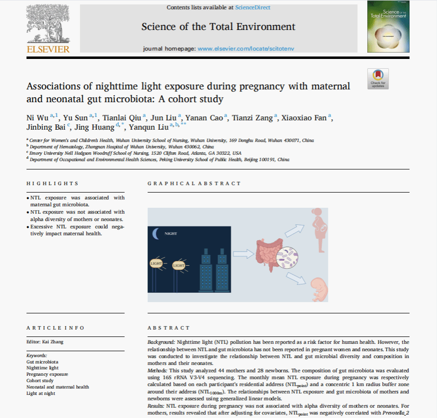 刘燕群课题组在环境科学高水平期刊Science of the Total Environment(中科院一区TOP期刊)杂志上发表了题为“Associations of nighttime light exposure during pregnancy with maternal and neonatal gut microbiota: A cohort study”(妊娠期夜间灯光暴露与母婴肠道菌群的联系:一项队列研究)的研究成果。该研究发现妊娠期夜间灯光(Nighttime light,NTL)暴露会显著影响母亲的肠道菌群,并讨论了其潜在的健康风险。研究结果对未来的孕妇健康管理具有重要意义。 porhub live