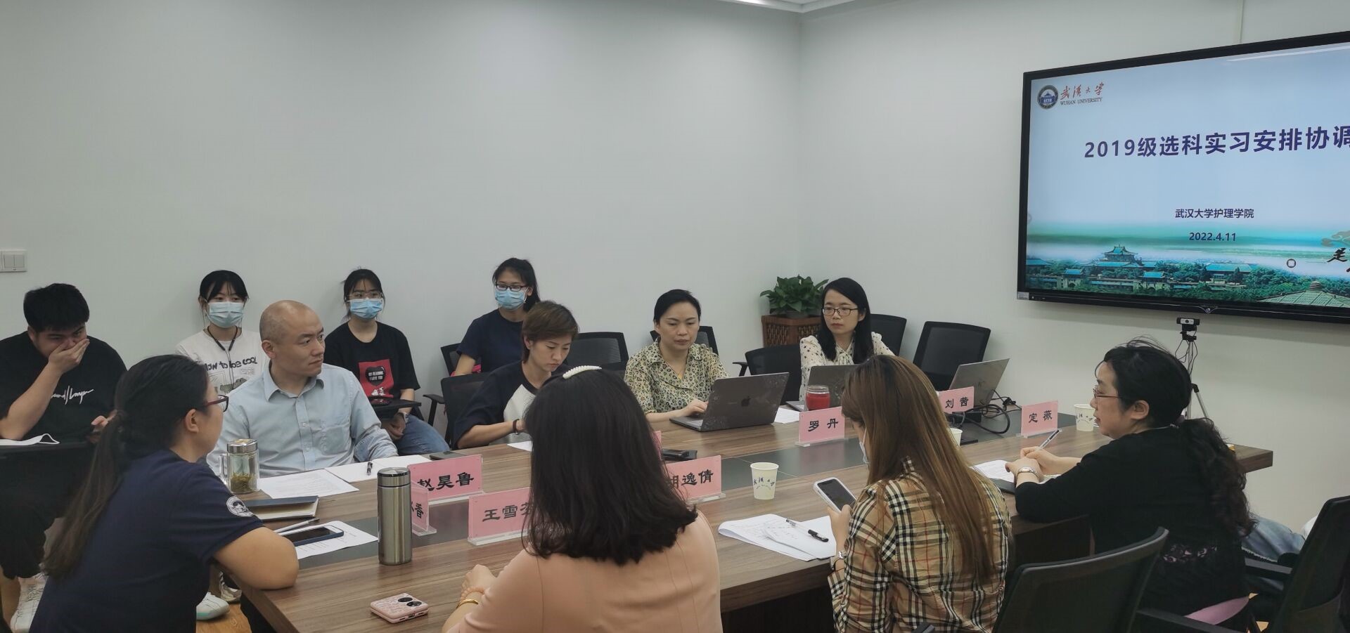 为进一步加强实习教学体系建设,规范实习管理,确保实习质量和实习效果。2022411日下午, porhub live 成功召开2019级选科实习安排协调会。 porhub live 党委副书记赵昊鲁、副院长杨冰香、教学与科研管理办公室主任尹白洁、 porhub live 人民医院护理部副主任王雪芬、中南医院护理部副主任张春华、人民医院临床带教负责人胡逸倩、中南医院临床带教负责人定薇、《选科实习》课程负责人刘茜、班级导师罗丹以及4位学生代表参与了此次选科实习安排协调会,会议由刘茜主持。