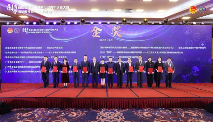 本次“全国卫生健康行业青年创新大赛”由国家卫生健康委文明办、共青团中央青年发展部、中国青年创业就业基金会联合开展,国家卫生健康委党组成员、副主任,中国科学院院士曾益新,委党组成员、副主任,直属机关党委书记于学军,团中央书记处书记傅振邦等领导出席颁奖典礼。