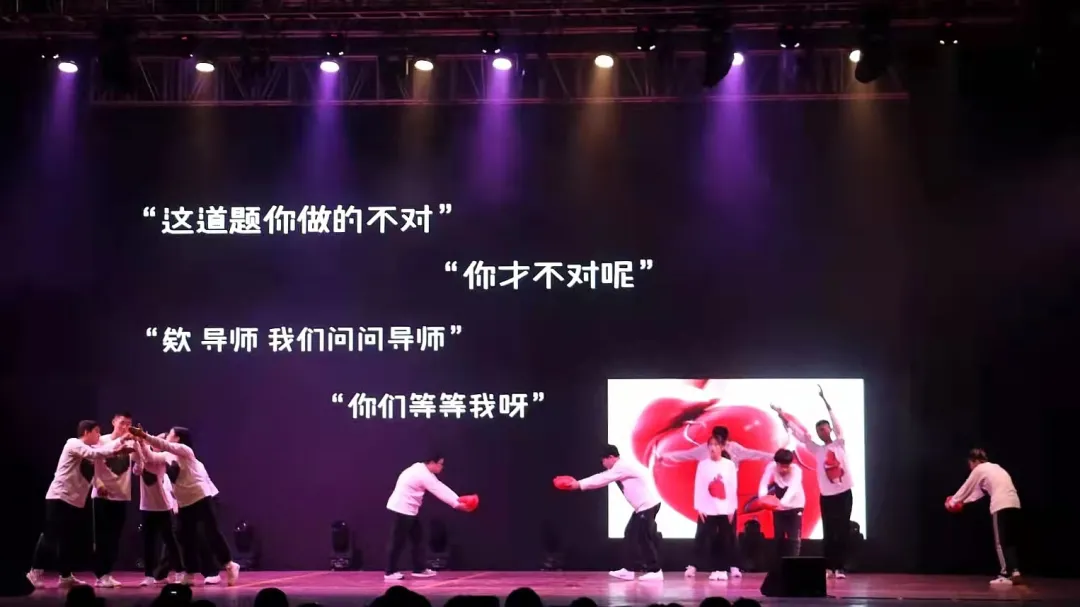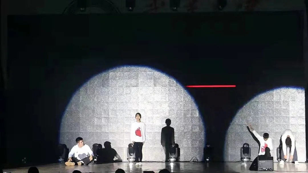 学子携作品《追》登上舞台,给观众们带来视觉和思想上的震撼。
