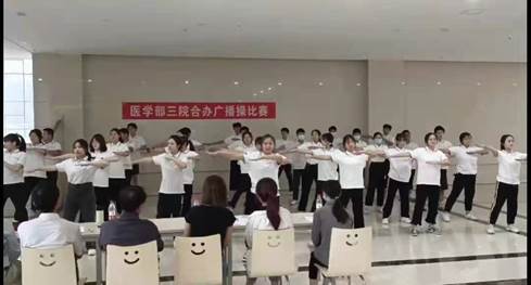 、药学院和口腔医学院合办的广播操比赛在医学部8号楼正式拉开帷幕。
