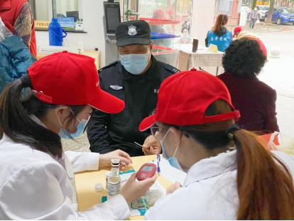 文理学部离退休工作处进行社区健康义诊服务,服务内容包括免费的测量血压、血糖以及相关疾病风险知识的健康宣教。团队成员们提前到达相应地点,进行用物准备和环境布置,以积极热情的精神面貌迎接社区居民们。