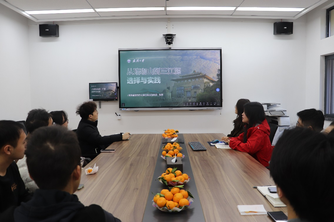 在医学部2号楼416室举办“从珞珈山到三江源:选择与实践”校友分享会。2022届硕士毕业生张乖重返母校,以自身职业经历为蓝本,向在场同学分享了参与青海定向选调后的发展路径,生动讲述了从省委办公厅接待岗位到乡村一线驻村的成长历程与实践感悟。