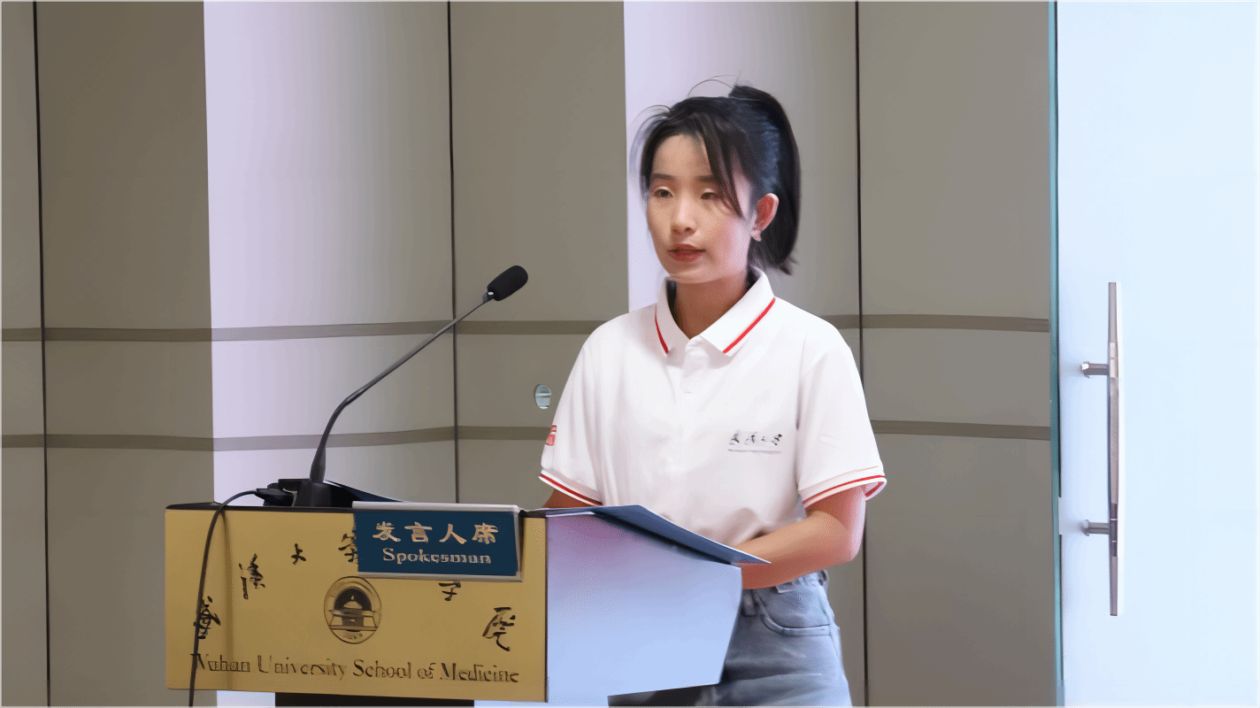2023级研究生新生代表黄蒨发言。过去的三年,各项突发事件给护理人带来了很多挑战,但也让她更加感受到了护理人的信仰与坚持,也坚定了她选择护理、从事护理、研究护理的决心。她从自身经历出发,讲述了在护理科研之路上的挑战与艰难。科研之道,任重道远。她认为,本科生和研究生的研究与学习是不同的,研究生期间更应专注钻研,去探索护理之奥秘,有所钻研有所成长。