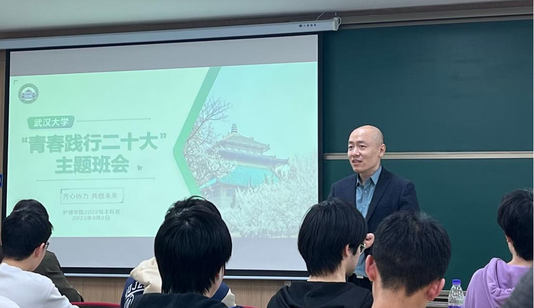 赵昊鲁老师对同学们谈到,大学生活并不仅仅是草坪音乐会的欢乐与樱花下的浪漫,更多的是在武大之平台享受高端的教育资源,以学习来丰富自身,拓宽生命的深度。同时,以武大校训“自强”告诫大家需要对自己严格要求,对自己的未来进行合理规划,并鼓励大家积极寻找人生方向,不畏困难,勇敢追求梦想。班主任刘茜老师谈到护理学是以人的健康为本,研究人生命的科学,所以学业压力较大,希望同学们在刻苦学习之余,平衡好学习和娱乐时间,在自律的同时也要适度放松,快乐学习。毛诗柔老师强调了党的精神对当代大学生的引领作用,并指出大学青年践行二十大的最好办法就是努力学习科学文化知识,不断增益自身,并鼓励大家自律学习,并学会自己寻找资源,将目光放长远,为美好未来而努力,不断追寻理想,不断努力奋斗,将生命稳稳托举。