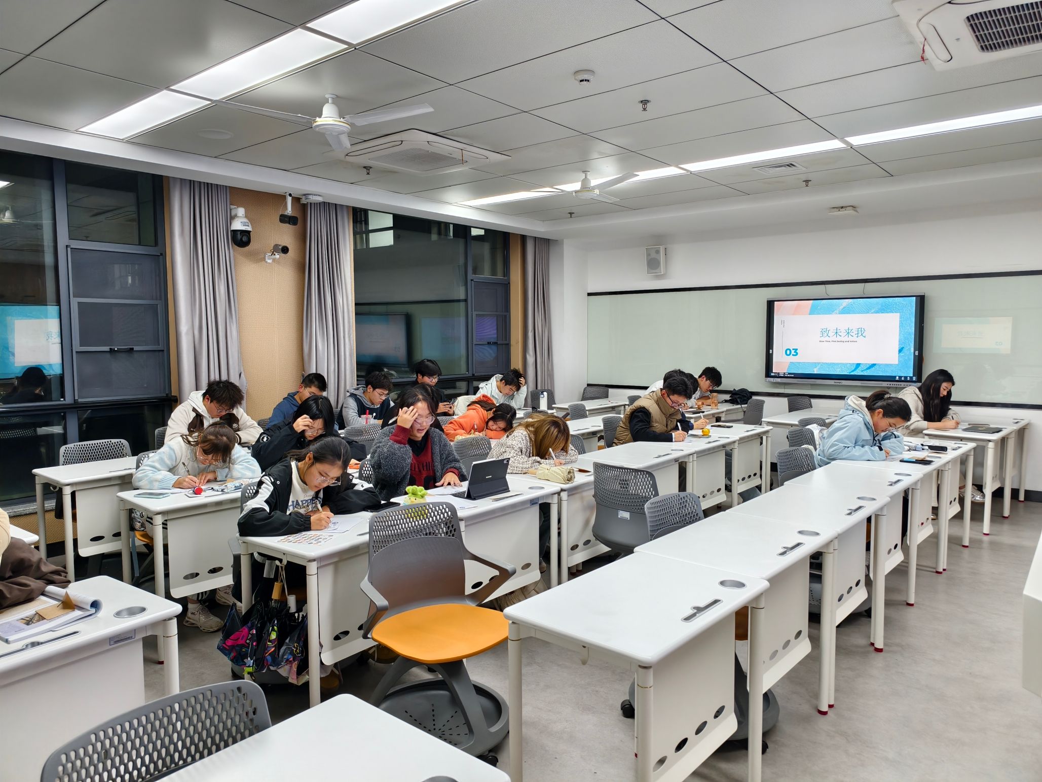 班会最后一个环节——“时光慢递”,为今晚的相遇赋予了未来的意义。老师和同学们沉静思绪,执笔写下《给四年后的自己》一封信,将当下的期待与目标封存于“未来邮箱”,交由魏老师统一保管,相约毕业之时共同启封,见证成长。