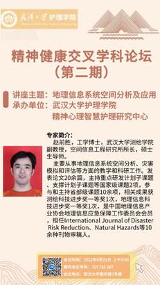 测绘学院副教授,空间信息工程研究所所长赵前胜副教授,他主要从事地理信息系统空间分析、灾害模拟和评估等方面的教学和科研工作。发表论文20余篇,主持重点研发计划子课题、支撑计划子课题等国家级课题2项,参与和主持省部级课题10余项,相关成果获测绘科技进步奖一等奖1次,地理信息科技进步奖一等奖1次,是中国地理信息产业协会地理信息应急保障工作委员会会员,担任International Journal of DisasterRisk Reduction、Natural Hazards等10余种刊物审稿人。本次论坛的主题是地理信息系统空间分析及应用。地理信息系统的空间分析在医学领域有广泛的应用,可以提供有关健康和医疗服务的关键信息,有助于改善医疗保健的管理和决策制定,可用于疫情监测和控制、医疗资源管理、健康不平等分析、流行病学研究等方面。